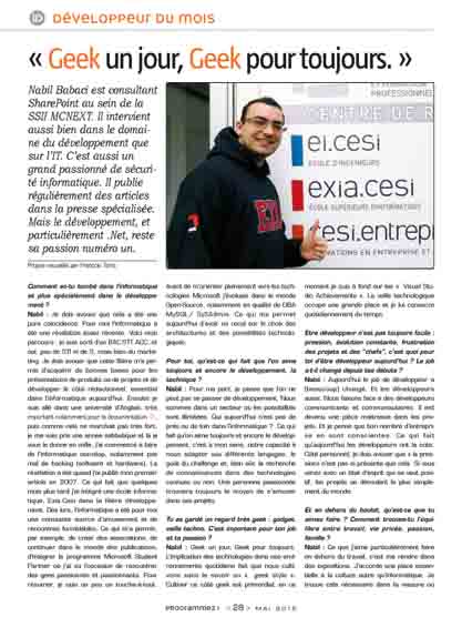 Nabil Babaci est consultant SharePoint au sein de la SSII MCNEXT. Il intervient aussi bien dans le domaine du développement que sur l’IT. C’est aussi un grand passionné de sécurité informatique. Il publie régulièrement des articles dans la presse spécialisée. Mais le développement, et particulièrement .Net, reste sa passion numéro un.