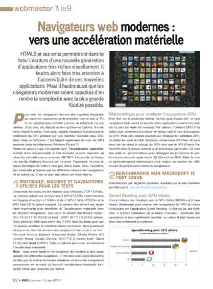 HTML5 et ses amis permettront dans le futur l’écriture d’une nouvelle génération d’applications très riches visuellement. Ilfaudra alors faire très attention à l’accessibilité de ces nouvelles applications. Mais il faudra aussi que les navigateurs modernes soient capables d’en rendre la complexité avec la plus grande fluidité possible.