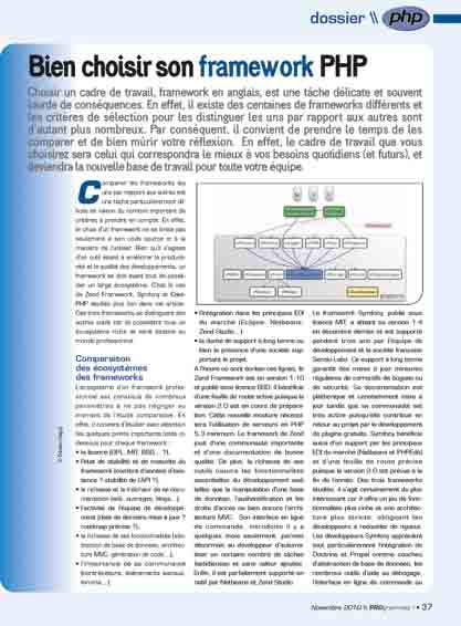 Loin des tumultes des grands projets open source et libres (MySQL, OpenOffice, Java, Mandriva…), les langages vivent leur vie, avancent à leur rythme. PHP fait partie de ceux-là. Malgré de nombreux remous autour de l’hypothétique PHP 6.0 et des revirements multiples, la communauté et les responsables ne se pressent pas. Revenons rapidement en arrière. L’une des grosses nouveautés de PHP était Unicode et une refonte de nombreux éléments du langage nécessitant un développement complexe et lourd engagé depuis 2005. Finalement, PHP 6 répondait bien aux attentes de langage et de performances. Et il était apparu qu’il serait plus lent, plus complexe que la v5… Finalement, la v5.3 intègre plusieurs nouveautés prévues dans la v6 : instruction goto, espaces de nom. Puis, en mars 2010, Rasmus annonce l’abandon de PHP 6… Reste maintenant à remobiliser les développements pour faire évoluer le langage sans se couper des fondations actuelles, d’où la volonté de s’appuyer sur la lignée 5.x. Même si tous les problèmes aperçus avec les ambitions de la v6 et de gouvernance ne sont pas résolus, notamment sur le support, ou non, d’Unicode. Et pour le moment, le calendrier reste vide. A priori, rien de nouveau avant mi- 2011. Mais des pistes se dessinent tout de même : épuration du langage, de nouveaux outils comme Dtrace, nouveau module CGI… Alors que se déroule une nouvelle édition du Forum PHP en novembre, nous revenons sur PHP. Et particulièrement sur quatre points : optimisation d’exécution, choix du framework, installation et déploiement de PHP sous Windows, et enfin choix du gestionnaire de contenu PHP.