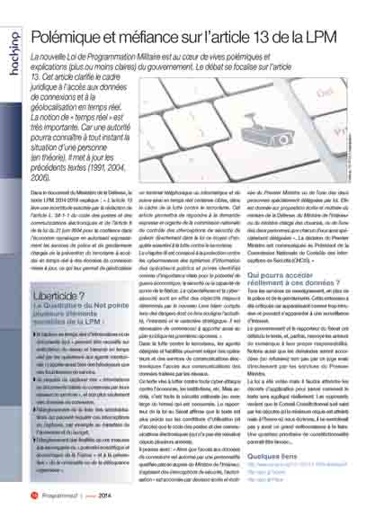 La nouvelle Loi de Programmation Militaire est au coeur de vives polémiques et explications (plus ou moins claires) du gouvernement. Le débat se focalise sur l’article 13. Cet article clarifie le cadre juridique à l’accès aux données de connexions et à la géolocalisation en temps réel. La notion de « temps réel » est très importante. Car une autorité pourra connaître à tout instant la situation d’une personne (en théorie). Il met à jour les précédents textes (1991, 2004, 2006).