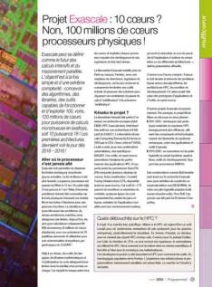 Exascale peut se définir comme le futur des calculs intensifs et du massivement parallèle. L’objectif est à la fois simple et d’une extrême complexité : concevoir des algorithmes, des librairies, des outils capables de fonctionner et d’exploiter 100, voire, 120 millions de coeurs pour puissance de calculs monstrueuse en exaflops, soit 10 puissance 18 ! Les premières architectures devraient voir le jour dès 2018 – 2019 !