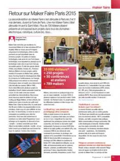 La seconde édition du Maker Faire s’est déroulée à Paris les 2 et 3 mai derniers, durant la Foire de Paris. Une mini Maker Faire s’était déroulée mi-avril à Saint Malo. Plus de 700 Makers étaient présents et ont exposé leurs projets dans tous les domaines : électronique, robotique, culture bio, tissu…