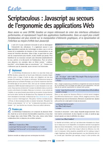 Le web 2.0 n'a pas seulement renouvelé le web en développant l'interactivité des utilisateurs. Il a également poussé à une exploitation maximale des technologies en place, que ce soit au niveau de la manipulation de données et des communications ou au niveau de l'interface elle-même. Grâce à Ajax, on peut doter les sites web de comportements plus réactifs, et plus intuitifs que jamais. Pour bénéficier de ces nouveaux concepts sans réinventer perpétuellement la roue, partons à la découverte de Scriptaculous. Pour cet article, nous placerons nos exemples dans un fichier nommé " scriptaculous. html ", et les librairies dans un sous-dossier " /js ". Comme nous n'utiliserons que du Javascript, aucun serveur n'est nécessaire.