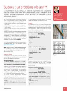 La programmation récursive est souvent présentée en prenant comme exemples les calculs du Factoriel ou des termes de la suite de Fibonacci, faciles à comprendre. Or de nombreux problèmes possèdent une solution récursive. C’est notamment le cas du célèbre jeu du Sudoku…