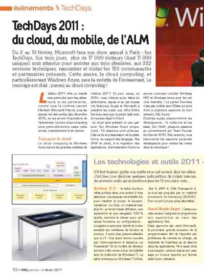 Du 8 au 10 février, Microsoft fera son show annuel à Paris : les TechDays. Sur trois jours, plus de 17 000 visiteurs (dont 11 000 uniques) sont attendus pour assister aux trois plénières, aux 332 sessions techniques, rencontrer et visiter les 150 communautés et partenaires présents. Cette année, le cloud computing, et particulièrement Windows Azure, sera la vedette de l’événement. Le message est clair : passez au cloud computing !