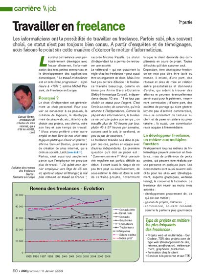 Le statut de freelance s’est particulièrement développé avec l’essor d’internet, l’informatisation des très petites entreprises et le développement des applications domestiques. " Le travail en freelance est en très forte progression : supérieure à +10% ", estime Michel Paysant, de Freelance en Europe.