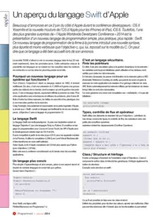 Beaucoup d’annonces en ce 2 juin du côté d’Apple durant la conférence développeurs : OS X Yosemite et la nouvelle mouture de l’OS d’Apple pour les iPhones et iPad, iOS 8. Toutefois, l’une des plus grandes surprises de « l’Apple Worldwide Developers Conference » 2014 est la présentation d’un nouveau langage de programmation simple, plus pratique, plus rapide : Swift. Ce nouveau langage de programmation de la firme à la pomme introduit une nouvelle syntaxe, plus épurée et moins verbeuse que l’objective-c, qui, lui, reposait sur le modèle du C. On peut dire que ce langage a été bien accueilli lors de son annonce.