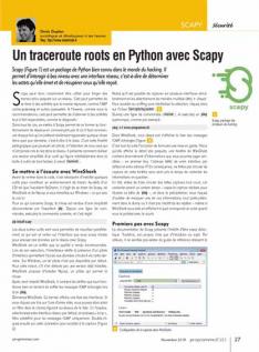 Scapy est un package de Python bien connu dans le monde du hacking. Il permet d’interagir à bas niveau avec une interface réseau, c’est-à-dire de déterminer les octets qu’elle émet et de récupérer ceux qu’elle reçoit.