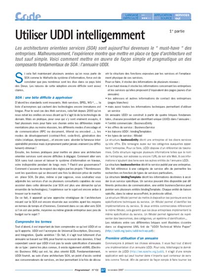 Les architectures orientées services (SOA) sont aujourd’hui devenues le " must-have " des entreprises. Malheureusement, l’expérience montre que mettre en place ce type d’architecture est tout sauf simple. Voici comment mettre en oeuvre de façon simple et pragmatique un des composants fondamentaux de SOA : l’annuaire UDDI.
