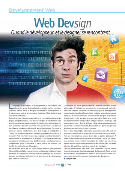 Aujourd’hui, avec l’évolution des outils et la complexité croissante des projets, des plates-formes, tout pousse vers plus de collaboration (active si possible) entre les deux profils : le développeur et le désigner. Ils sont contraints à travailler ensemble, voire, dans certains cas à fusionner. Mais un troisième profil apparaît aussi : l’intégrateur. On conserve alors une simple collaboration, avec à la charge de l’intégrateur le " build " du projet en intégrant les éléments graphiques et le code. Profil d’avenir ? Peut être. Car il ne sera pas toujours évident de faire intimement travailler le développeur et le designer. Le devsigner peut lui aussi connaître un brillant avenir, reste à définir son rôle exact et surtout les compétences qu’on lui demande. Il paraît difficile de maîtriser l’ensemble des plates-formes et langages.