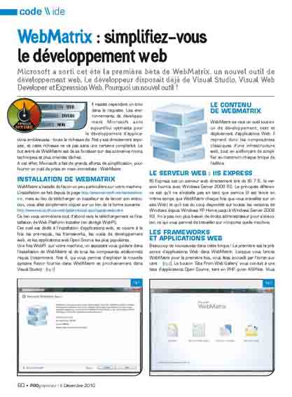 Microsoft a sorti cet été la première bêta de WebMatrix, un nouvel outil de développement web. Le développeur disposait déjà de Visual Studio, Visual Web Developer et Expression Web. Pourquoi un nouvel outil ?