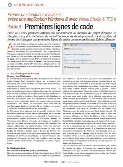 Avant tout, il reste une étape de configuration très importante qui va permettre de paramétrer les interactions, en termes de code source, que l’on rencontrera entre Team Foundation Server et les fichiers sources manipulés : La configuration du Workspace (espace de travail). La nouvelle version de Team Foundation Server introduit un nouveau type de Workspace : le Workspace dit Local, dont le fonctionnement diffère sensiblement de celui de son prédécesseur (le Workspace dit Server). Une fois cette première étape complétée, il sera enfin temps de se plonger dans le code de l’application Windows 8 en créant en quelques lignes un petit lecteur de flux RSS.