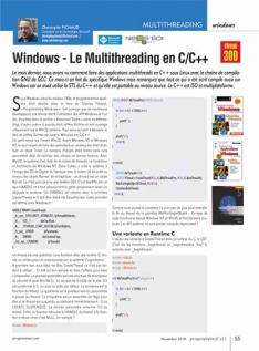 Le mois dernier, nous avons vu comment faire des applications multithreads en C++ sous Linux avec la chaîne de compilation GNU de GCC. Ce mois-ci on fait du spécifique Windows mais remarquez que tout ce qui a été écrit compile aussi sur Windows car on avait utilisé la STL du C++ et qu’elle est portable au niveau source. Le C++ est ISO et multiplateforme.