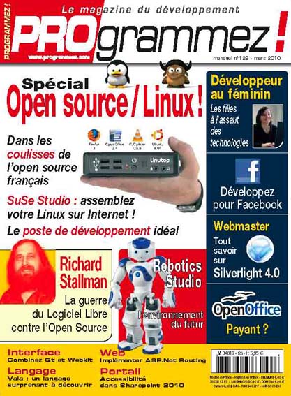 Dans programmez! PDF #128 Paru le 01/03/2010 S'ABONNER Evénement Microsoft TechDays 2010 Lire la suite de Microsoft TechDays 2010 Conférence PHP Benelux Lire la suite de Conférence PHP Benelux SGBD Industrialiser les développements batchs PLSQL Lire la suite de Industrialiser les développements batchs PLSQL Gros Plan Au coeur de Silverlight 4.0 Lire la suite de Au coeur de Silverlight 4.0 Dossier Spécial Open Source-Linux Dans les coulisses de l’Open Source ! Lire la suite de Spécial Open Source-Linux Dans les coulisses de l’Open Source ! Carrière Informatique un avenir au féminin ? Lire la suite de Informatique un avenir au féminin ? Code Développer des applications .Net et SharePoint accessibles avec UI Automation et ARIA Lire la suite de Développer des applications .Net et SharePoint accessibles avec UI Automation et ARIA Utiliser Webkit dans votre application de bureau Lire la suite de Utiliser Webkit dans votre application de bureau ASP.NET Routing Lire la suite de ASP.NET Routing Microsoft Robotics Developer Studio : la robotique accessible à tous ! (1re partie Lire la suite de Microsoft Robotics Developer Studio : la robotique accessible à tous ! (1re partie Vala, la programmation facile sous Linux Oui Lire la suite de Vala, la programmation facile sous Linux Ecrire une application Facebook Oui Lire la suite de Ecrire une application Facebook