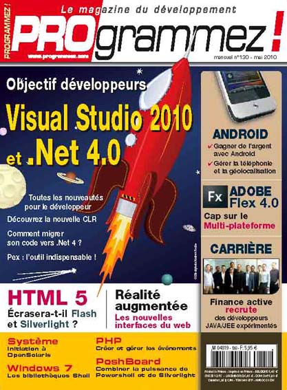 Dans programmez! PDF #130 Paru le 01/05/2010 S'ABONNER Actus iPhone OS 4.0 : Apple veut préserver son avance Lire la suite de iPhone OS 4.0 : Apple veut préserver son avance IBM lance Rational Software Delivery Services for cloud computing Lire la suite de IBM lance Rational Software Delivery Services for cloud computing Intel Software conforte la programmation parallèle Lire la suite de Intel Software conforte la programmation parallèle Webmaster HTML 5 : le tueur de RIA Lire la suite de HTML 5 : le tueur de RIA La réalité augmentée sur le web ou « une dérive dans le Cyberpunk » Lire la suite de La réalité augmentée sur le web ou « une dérive dans le Cyberpunk » Gros plan Migrations d’applications pour les systèmes multi-coeurs et 64 bit Lire la suite de Migrations d’applications pour les systèmes multi-coeurs et 64 bit Evénements EclipseCon 2010 Lire la suite de EclipseCon 2010 Flex 4 : cap sur le multiplateforme Lire la suite de Flex 4 : cap sur le multiplateforme Carrière Le pôle développement techno de Finance active Lire la suite de Le pôle développement techno de Finance active L’emploi est reparti en mars 2010 Lire la suite de L’emploi est reparti en mars 2010 SGBD Agrégation de données en SQL avec les fonctions d’analyse Lire la suite de Agrégation de données en SQL avec les fonctions d’analyse Dossier Visual Studio 2010 Cap sur le développeur ! Lire la suite de Visual Studio 2010 Cap sur le développeur ! Témoignage Création d’une application mobile à succès Lire la suite de Création d’une application mobile à succès Code Android : création d’interfaces graphiques (2e partie) Lire la suite de Android : création d’interfaces graphiques (2e partie) Détecteur d’événements sous Android : l’application BigBrother Oui Lire la suite de Détecteur d’événements sous Android : l’application BigBrother Le nouveau Symfony est arrivé ! (2e partie) Lire la suite de Le nouveau Symfony est arrivé ! (2e partie) Un événement en PHP ? Non, mais des événements Lire la suite de Un événement en PHP ? Non, mais des événements PoshBoard : piloter Silverlight avec PowerShell Lire la suite de PoshBoard : piloter Silverlight avec PowerShell A la découverte d’Open Solaris Lire la suite de A la découverte d’Open Solaris Manipuler les bibliothèques du Shell de Windows 7 Oui Lire la suite de Manipuler les bibliothèques du Shell de Windows 7