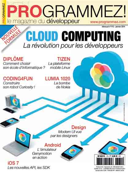 Dans programmez! PDF #170 Paru le 01/01/2014 S'ABONNER Veille techno Silicon Valley Chapitre 3 : les (nouveaux) eldorados ! Lire la suite de Silicon Valley Chapitre 3 : les (nouveaux) eldorados ! Journal d'un développeur #2 : La revue de code Lire la suite de #2 : La revue de code Outils Genymotion, l’autre émulateur Android Lire la suite de Genymotion, l’autre émulateur Android Hacking Polémique et méfiance sur l’article 13 de la LPM Lire la suite de Polémique et méfiance sur l’article 13 de la LPM C’est quoi la licence CDAISI ? Lire la suite de C’est quoi la licence CDAISI ? Outil forensique : Moonsols Windows Memory Toolkit 2.0 Lire la suite de Outil forensique : Moonsols Windows Memory Toolkit 2.0 Développeur du mois Bruno, « senior++ » Lire la suite de Bruno, « senior++ » Matériel Windows 8.1 et l’impression 3D Lire la suite de Windows 8.1 et l’impression 3D Tizen À la découverte de Tizen Lire la suite de À la découverte de Tizen Cloud Comment et pourquoi le Cloud révolutionne le développement ? Lire la suite de Comment et pourquoi le Cloud révolutionne le développement ? Les offres de Cloud Computing Lire la suite de Les offres de Cloud Computing Comment les enjeux actuels de la sécurité de l’information se traduisent-ils dans le développement avec le Cloud ? Lire la suite de Comment les enjeux actuels de la sécurité de l’information se traduisent-ils dans le développement avec le Cloud ? Le cloud pour les applications : une ressource puissantemais mal comprise Lire la suite de Le cloud pour les applications : une ressource puissantemais mal comprise Les apports du Cloud Computing dans l’univers du développement mobile Oui Lire la suite de Les apports du Cloud Computing dans l’univers du développement mobile Architecture multi-tenancy à la conquête du SaaS Oui Lire la suite de Architecture multi-tenancy à la conquête du SaaS Carrière Bien choisir son école d’informatique Lire la suite de Bien choisir son école d’informatique Windows Phone Nokia Lumia 1020 : tests & programmation Lire la suite de Nokia Lumia 1020 : tests & programmation Java Un export Excel générique en Java basé sur les annotations et l’introspection 1ère partie Oui Lire la suite de Un export Excel générique en Java basé sur les annotations et l’introspection 1ère partie Coding4fun Raspberry Pi n° 13 : CuriosiPi, créer son robot ! Lire la suite de Raspberry Pi n° 13 : CuriosiPi, créer son robot ! Smartphone iOS 7 : de A à Z ! 2e partie Oui Lire la suite de iOS 7 : de A à Z ! 2e partie Microsoft La solution Power BI de Microsoft 1ère partie Lire la suite de La solution Power BI de Microsoft 1ère partie SharePoint Les Apps SharePoint 2013 : Authentification et autorisation 1ère partie Lire la suite de Les Apps SharePoint 2013 : Authentification et autorisation 1ère partie Design « Modern UI » vue par un designer Lire la suite de « Modern UI » vue par un designer Time machine Timeline : 1989- ? Objet : l’informatique automatise le métropolitain parisien Lire la suite de Timeline : 1989- ? Objet : l’informatique automatise le métropolitain parisien