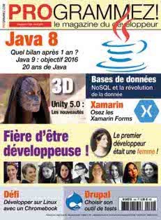 Dans programmez! PDF #184 Paru le 28/03/2015 S'ABONNER Java Java 8 : le jour d’après Lire la suite de Java 8 : le jour d’après Les 20 ans de Java Lire la suite de Les 20 ans de Java Bilan et perspectives un an après la sortie de Java 8 Lire la suite de Bilan et perspectives un an après la sortie de Java 8 Pourquoi des entreprises choisissent Java ? Lire la suite de Pourquoi des entreprises choisissent Java ? Eclipse : bien plus qu’un IDE Java Lire la suite de Eclipse : bien plus qu’un IDE Java Java peut-il mourir ? Lire la suite de Java peut-il mourir ? Le Cloud sauvera-t’il Java EE? Lire la suite de Le Cloud sauvera-t’il Java EE? Carrière Devenez développeuse ! Lire la suite de Devenez développeuse ! Témoignage de Daphné Popin, développeuse chez Marmelab (Nancy) Lire la suite de Témoignage de Daphné Popin, développeuse chez Marmelab (Nancy) Paroles de Ludwine et de Stéphanie Lire la suite de Paroles de Ludwine et de Stéphanie Alizée Penel, développeuse chez Genymobile Lire la suite de Alizée Penel, développeuse chez Genymobile JavaScript JavaScript pour les Jedi, épisode II : l'attaque des closures Lire la suite de JavaScript pour les Jedi, épisode II : l'attaque des closures Hacking Remèdes anti-DDoS Lire la suite de Remèdes anti-DDoS Silicon Valley Développeurs, Apps, SDK, API : les enjeux des objets connectés et du wearable Lire la suite de Développeurs, Apps, SDK, API : les enjeux des objets connectés et du wearable Matériel Raspberry Pi 2 : c’est du sérieux ! Lire la suite de Raspberry Pi 2 : c’est du sérieux ! Circuits Scribe, interview Lire la suite de Circuits Scribe, interview Chromebook : développer sur Linux pour – 200 € Lire la suite de Chromebook : développer sur Linux pour – 200 € Je débute avec NoSQL Lire la suite de NoSQL Cassandra : partez sur une bonne base ! Lire la suite de Cassandra : partez sur une bonne base ! 3D Unity 5.0 : les nouveautés Lire la suite de Unity 5.0 : les nouveautés Xamarin Xamarin Forms pour le développeur XAML Lire la suite de Xamarin Forms pour le développeur XAML Xamarin : gérer la rétro-compatibilité d'une application Android Lollipop et Material Design Lire la suite de Xamarin : gérer la rétro-compatibilité d'une application Android Lollipop et Material Design Compilateur Visual Studio 2015 Preview et le compilateur .NET “Roslyn” Lire la suite de Visual Studio 2015 Preview et le compilateur .NET “Roslyn” Maker Gérer sa cave à vin avec Microsoft Azure et des QR Code Lire la suite de Gérer sa cave à vin avec Microsoft Azure et des QR Code Arbre La notion d’arbres en informatique Lire la suite de La notion d’arbres en informatique Office Ma première application pour Office 365 Lire la suite de Ma première application pour Office 365 Machine learning Vos premiers pas en Machine Learning Lire la suite de Vos premiers pas en Machine Learning Drupal Tests unitaires en Drupal Lire la suite de Tests unitaires en Drupal Design Conception d’interface tactile 2e partie : la souplesse du processus Lire la suite de Conception d’interface tactile 2e partie : la souplesse du processus Time machine Timeline : 1981 Objet : le BBC d’Acorn, le plus bel ordinateur du monde Lire la suite de Timeline : 1981 Objet : le BBC d’Acorn, le plus bel ordinateur du monde