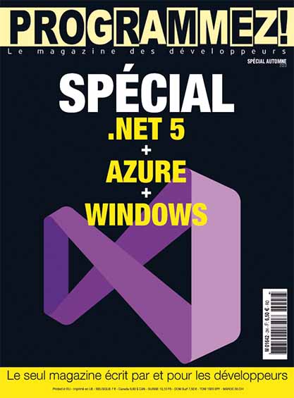 Dans programmez! PDF Hors Série #2 Paru le 23/10/2020 S'ABONNER .NET .NET 5 arrive (enfin) ! 1 Lire la suite de .NET 5 arrive (enfin) ! Initier un projet d'application Windows avec .NET 5 sans se louper 1 Lire la suite de Initier un projet d'application Windows avec .NET 5 sans se louper Windows Form, WPF, WinUI et Xamarin avec .NET Core 1 Lire la suite de Windows Form, WPF, WinUI et Xamarin avec .NET Core Multi plates-formes Les nouveautés de Xamarin 1 Lire la suite de Les nouveautés de Xamarin Développer une application desktop pour Windows et macOS avec Xamarin.Forms 1 Lire la suite de Développer une application desktop pour Windows et macOS avec Xamarin.Forms Windows Pourquoi C++ en 2020 ? 1 Lire la suite de Pourquoi C++ en 2020 ? Introduction à C++/WinRT Lire la suite de Introduction à C++/WinRT Cloud / IoT No Ops ?! Yes, Back2Bash… 1 Lire la suite de No Ops ?! Yes, Back2Bash… Azure FarmBeats 1 Lire la suite de Azure FarmBeats Azure IoT Central : l'IoT en toute simplicité Lire la suite de Azure IoT Central : l'IoT en toute simplicité Divers Piloter votre chaîne YOUTUBE avec vos propres KPI avec C#, AZURE et POWER BI 1 Lire la suite de Piloter votre chaîne YOUTUBE avec vos propres KPI avec C#, AZURE et POWER BI Edge sous Chromium : y a-t-il du changement pour les développeurs ? Lire la suite de Edge sous Chromium : y a-t-il du changement pour les développeurs ?