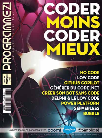 Dans programmez! PDF Hors série #7 Paru le 25/05/2022 S'ABONNER Conception d'une application Développer avec peu ou sans code, mais développer quand même Lire la suite de Développer avec peu ou sans code, mais développer quand même Pénurie de développeurs Le Low-Code gagne tous les acteurs de l’IT Lire la suite de Le Low-Code gagne tous les acteurs de l’IT Low code Low-Code, the Raise of the Citizen (developer) Lire la suite de Low-Code, the Raise of the Citizen (developer) Power Apps Créer une application mobile sans écrire de code en 15 mn avec Microsoft Power Apps Lire la suite de Créer une application mobile sans écrire de code en 15 mn avec Microsoft Power Apps Spécificités du low-code De l’usage aux compétences : quelles sont les spécificités du low-code Lire la suite de De l’usage aux compétences : quelles sont les spécificités du low-code Aspectize Coder : passionnément, beaucoup, un peu ? Lire la suite de Coder : passionnément, beaucoup, un peu ? Oracle Visual Builder Oracle Visual Builder : une app Web en quelques minutes Lire la suite de Oracle Visual Builder : une app Web en quelques minutes Projets commerciaux “Etre ou ne pas être” ? La réponse est dans le Low Code / No Code Lire la suite de “Etre ou ne pas être” ? La réponse est dans le Low Code / No Code iPaaS Plate-forme iPaaS : Quels fondamentaux pour commencer votre mouvement vers le Low Code ? Lire la suite de Plate-forme iPaaS : Quels fondamentaux pour commencer votre mouvement vers le Low Code ? Salesforce Salesforce : les no code / low code sont dans l’ADN de la plateforme Lire la suite de Salesforce : les no code / low code sont dans l’ADN de la plateforme Ma première app Lightning Lire la suite de Ma première app Lightning Un écosystème de ressources pour étendre votre plateforme Lire la suite de Un écosystème de ressources pour étendre votre plateforme AWS Amplify Studio AWS Amplify Studio : Low Code pour le dev full stack Lire la suite de AWS Amplify Studio : Low Code pour le dev full stack Bubble Bubble : de la théorie à la pratique Lire la suite de Bubble : de la théorie à la pratique Power Platform Power Platform et l’approche du développement de fusion Lire la suite de Power Platform et l’approche du développement de fusion Power Query Power Query : 95% no code, 5% code Lire la suite de Power Query : 95% no code, 5% code Azure Au coeur d’Azure avec les Fonctions Durables Lire la suite de Au coeur d’Azure avec les Fonctions Durables Unity Un bref aperçu de Unity Bolt Lire la suite de Un bref aperçu de Unity Bolt WebAssembly Combattre la complexité de WebAssembly avec Reactr 1 Lire la suite de Combattre la complexité de WebAssembly avec Reactr Dotnet tool Génération de code C# avec dotnet tool 1 Lire la suite de Génération de code C# avec dotnet tool Delphi & C++Builder Delphi & C++Builder : low code par conception ! 1 Lire la suite de Delphi & C++Builder : low code par conception ! GitHub CoPilot GitHub CoPilot : l’art de générer du code Lire la suite de GitHub CoPilot : l’art de générer du code JHipster JHipster, la boîte à outils sauce low code ? Lire la suite de JHipster, la boîte à outils sauce low code ? Bot Un bot conversationnel en low code Lire la suite de Un bot conversationnel en low code Serverless Comprendre et utiliser Serverless pour optimiser votre infrastructure 1 Lire la suite de Comprendre et utiliser Serverless pour optimiser votre infrastructure