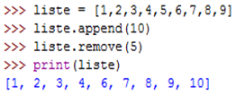 La méthode « append » permet d’ajouter un élément à la liste qui lui est noté entre parenthèse et la méthode remove permet de supprimer un élément de la liste.